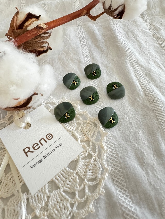 ヴィンテージボタン9個セット summer 14 (サマーグリーン)