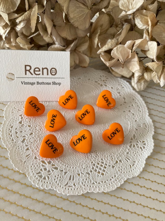 ヴィンテージボタン 8個セット モチーフ02 ハート(オレンジ)