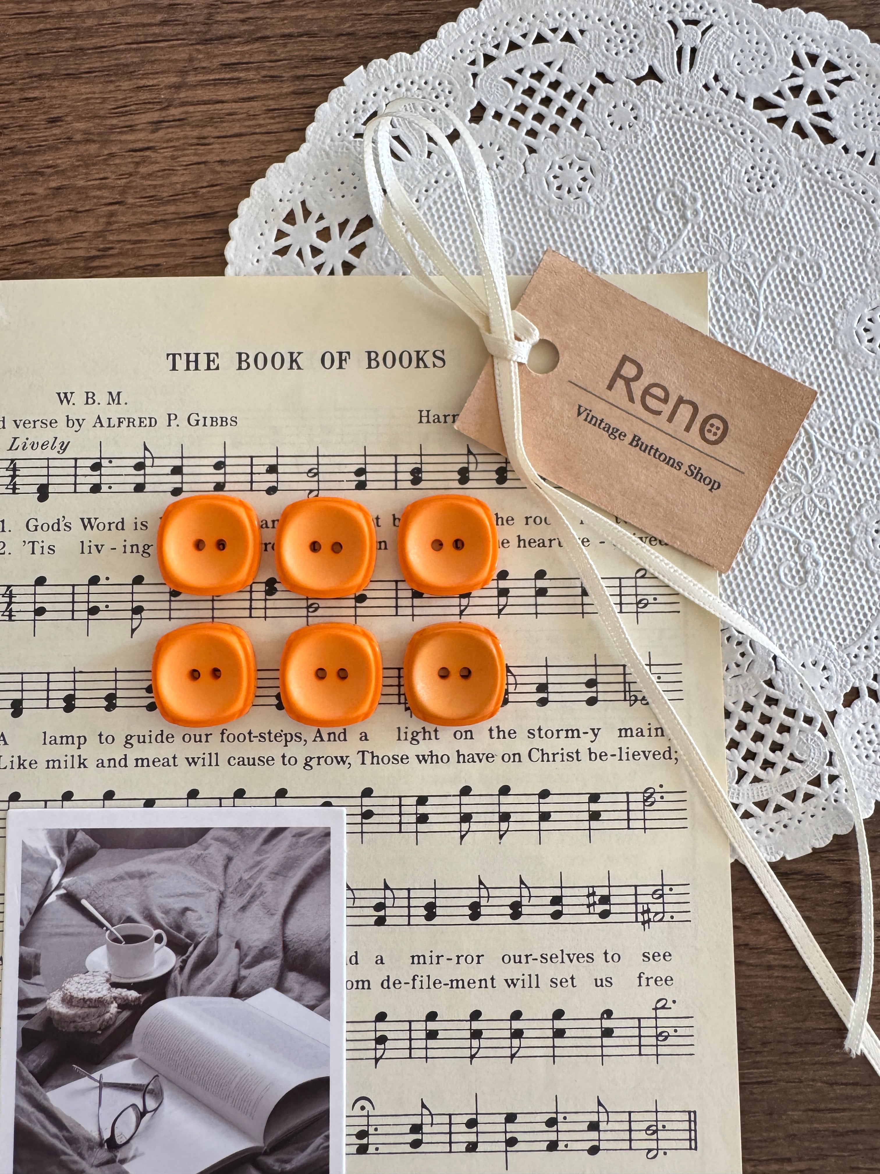 【在庫あり】ヴィンテージボタン6個セット ベーシック 27 square M(オレンジ6)