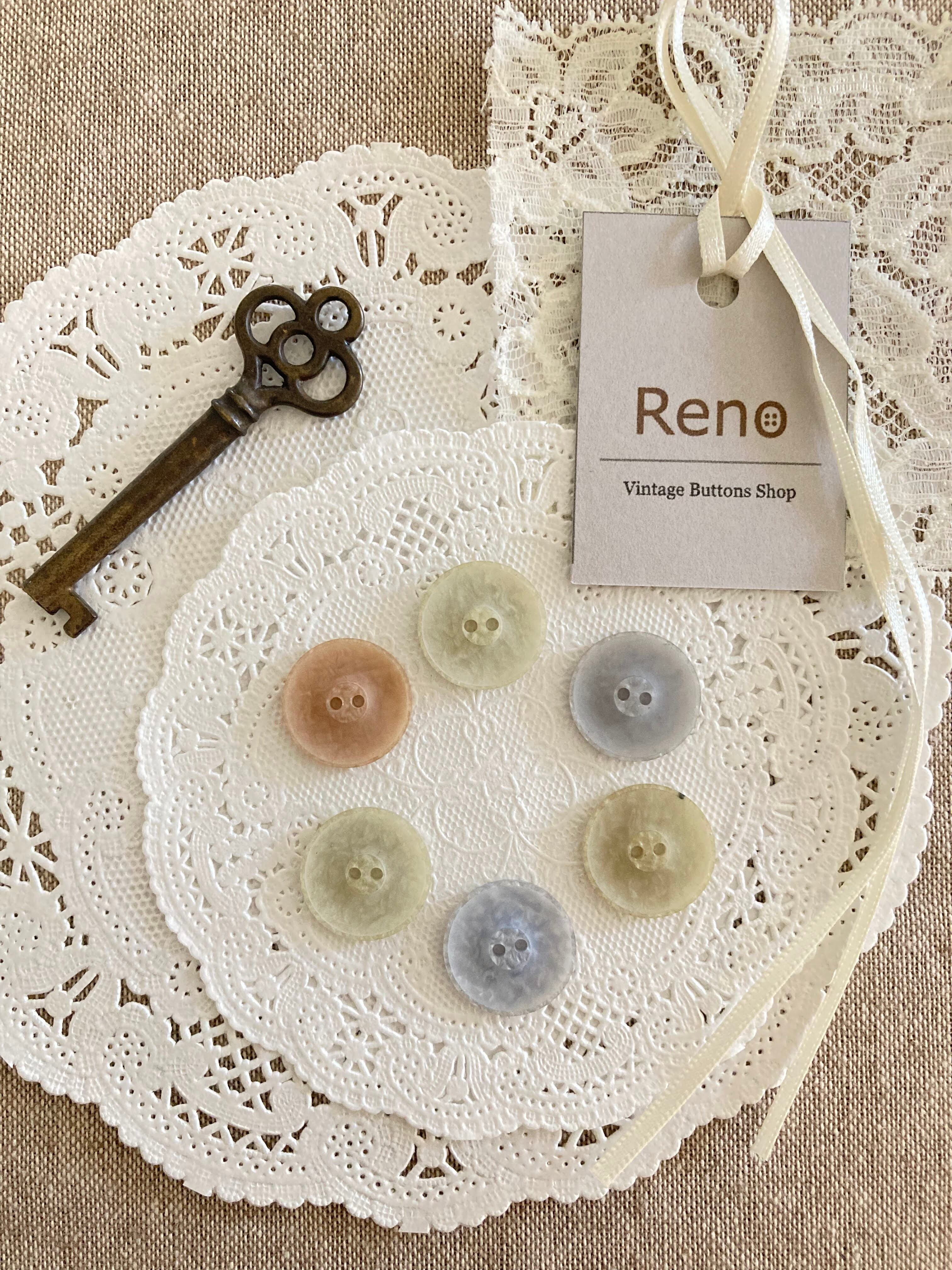 【在庫あり】ヴィンテージボタン6個セット summer 20 和紙風 M(ライトカラー)